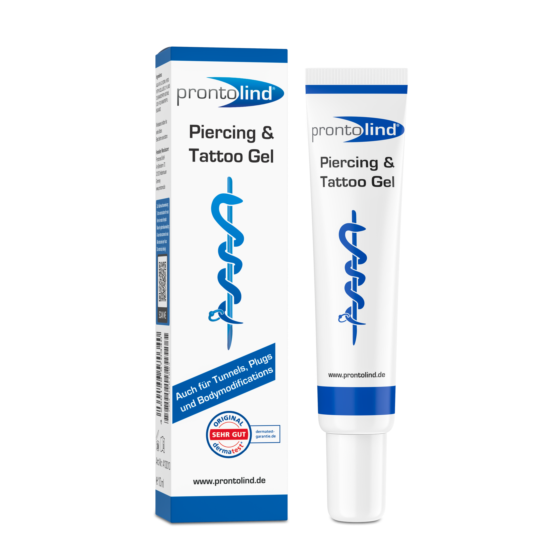 Das Gel (10ml) haftet besonders gut an Nasen- und Ohrenpiercings und ist ideal, wenn ein Verband das frische Piercing schützt (z.B. Bodymodificatons). Bei Fleshtunnels wirkt es als Gleitmitel und vermeidet Geruchsbildung. Zudem ist es - kombiniert mit dem Prontolind® Schaum - ideal zur Infektonsprophylaxe beim Tätowieren.